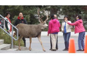 This weekend a group of tourists got up-close and personal with a mule deer that wandered onto Banff. Kim Titchener is a wildlife expert and the founder of "Bear Safety and More," based in Canmore. She spoke with Doug Dirks.